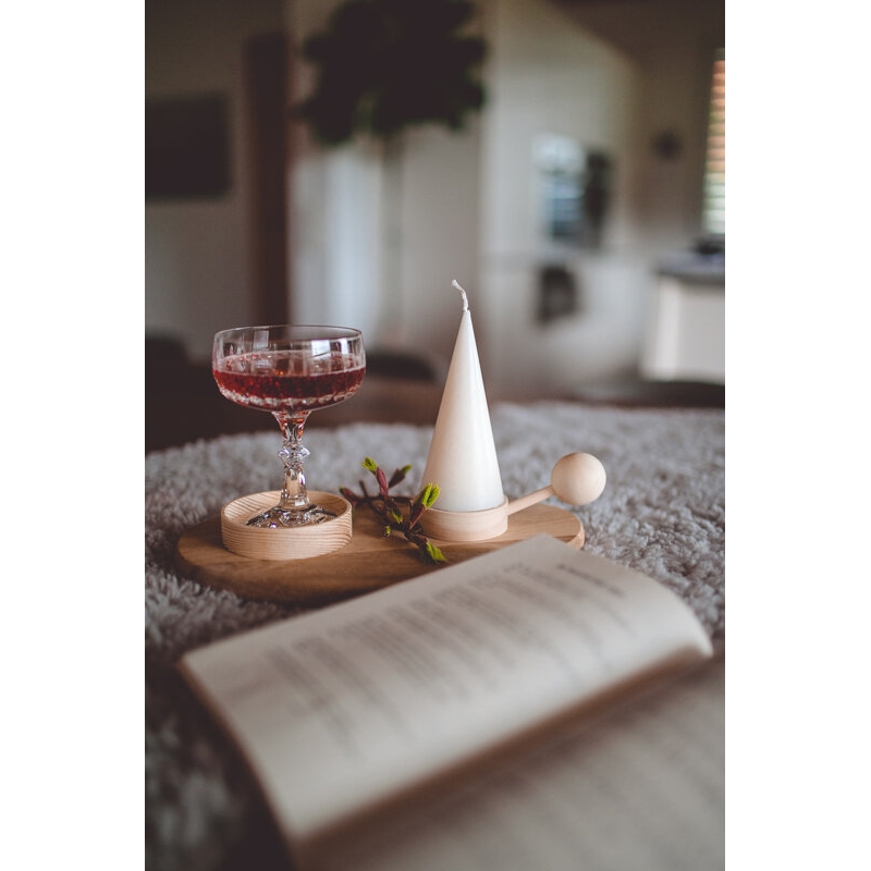 Dřevěný svícen je vyrobený z masivního dřeva borovice původem z Finska. V procesu výroby nejsou použity žádné chemikálie, protože borovicové dřevo je přirozeně antibakteriální. Dodavatel dřeva má certifikaci PECF a samotné dřevo z udržitelných zdrojů je také certifikováno. Tímto způsobem je možné vysledovat použitý materiál až k místu, kde byl strom vysazen.