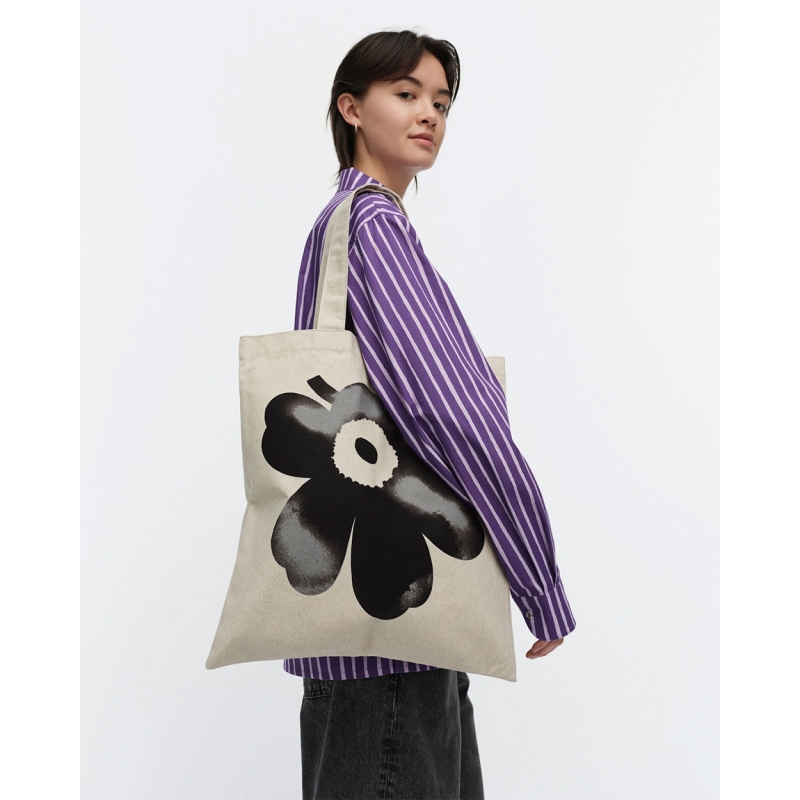 Stylová a pevná taška Vankka od Marimekko je vyrobena z bavlny a lnu a nese na sobě výrazný vzor Akvarelli Unikko – ikonický motiv vlčího máku, který působí, jako by byl malovaný akvarelem. Díky použitému materiálu je taška nejen praktická, ale i příjemně strukturovaná a přirozeně živá. Taška se šije v Estonsku z látky potištěné ve Finsku a je z limitované kolekce Marimekko.