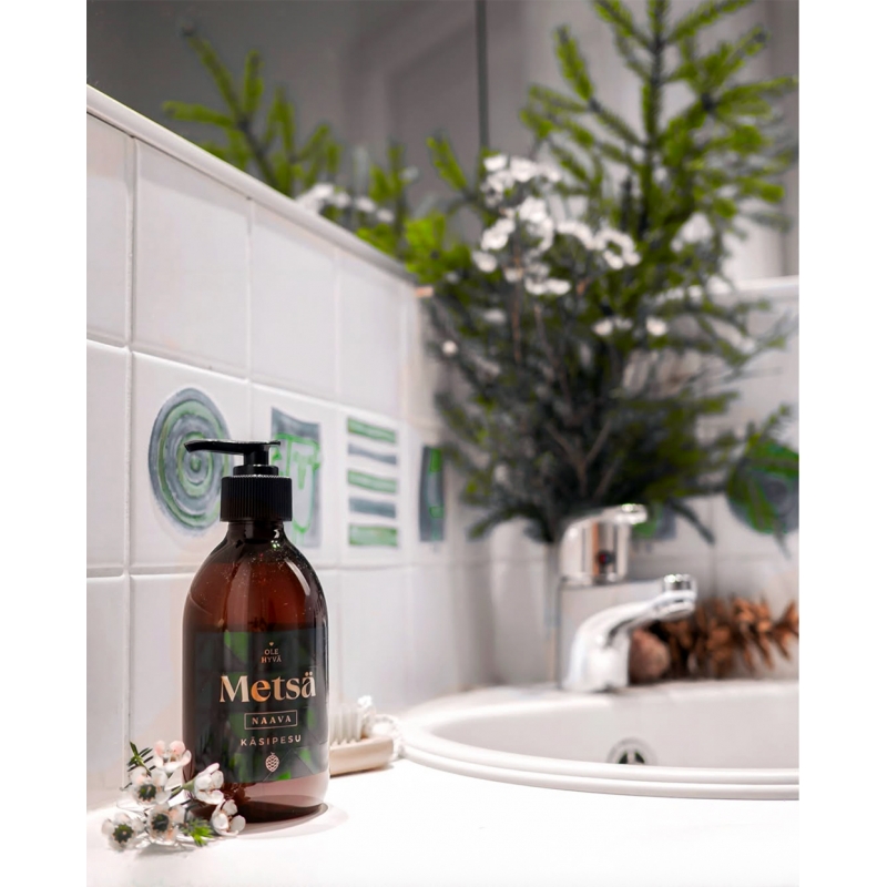 Přírodní tekuté mýdlo s vůní finského lesa jemně čistí a pečuje o pokožku. Obsahuje SpruceSugar™, výtažek z finského smrkového dřeva bohatý na antioxidanty, který chrání pokožku před předčasným stárnutím. Éterické oleje z borovice, máty a tea tree olej dodávají svěží lesní vůni. Mýdlo je čistě přírodní, veganské, biologicky odbouratelné a balené v elegantní lahvi ze 100% recyklovaného plastu. Vhodné pro každodenní použití a pro celou rodinu.