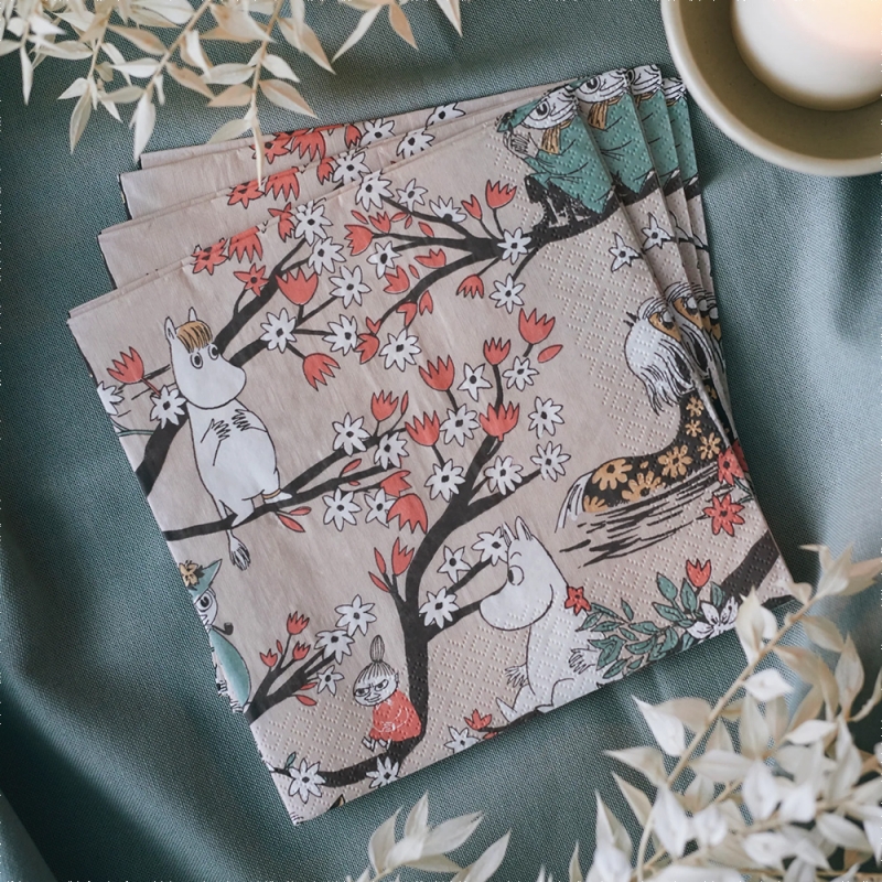 Kvalitní papírové ubrousky s motivem zamilovaných Mumínků zpestří jídelní stůl a udělají radost nejen dětem, ale i dospělým milovníkům příběhů od slavné finské autorky Tove JanssonBalení obsahuje 20 kusů.