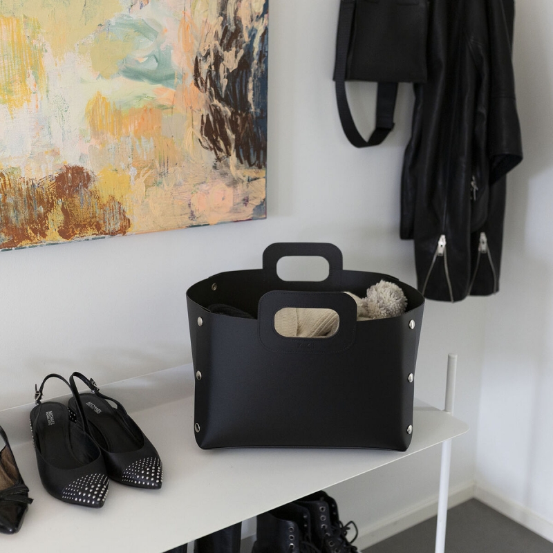 Elegantní úložný koš Kätkö přinese do vašeho domova i kanceláře stylový řád. Díky jednoduchému systému zapínání na druky se snadno skládá, má praktická madla na přenášení a poslouží k uložení časopisů, hraček, přízí, tvořivých potřeb nebo textilií. Nadčasový design a kvalitní zpracování z recyklované kůže z něj dělají nejen funkční doplněk, ale i výrazný prvek interiéru. Skvěle ladí například se stojanem na časopisy od stejného výrobce. Úložný koš je vyrobený přímo ve Finsku.
