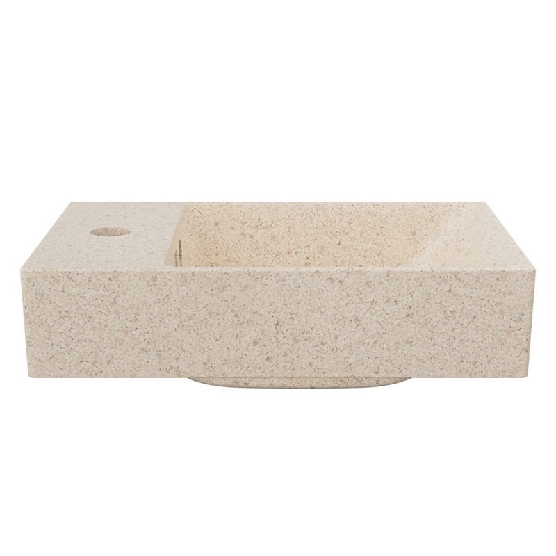 Velikost umyvadla je ideální pro menší koupelny nebo na toaletu a to nejen v domácnostech, ale i v komerčních prostorách. Tento model je určený pro umístění na skříňku nebo desku a je bez přepadu a otvoru na baterii, která se usazuje vedle umyvadla nebo do stěny nad ním. Odstín bílé je světlý krémový a povrch lesklý.