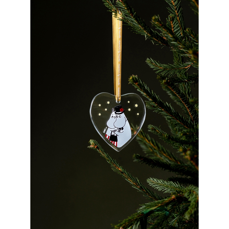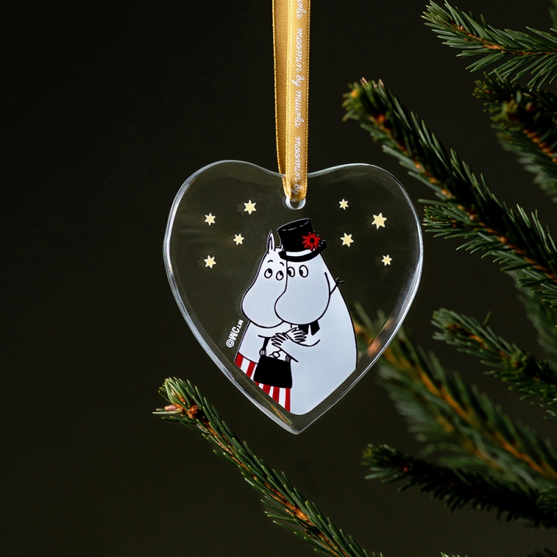 Vneste do svého domova kousek kouzelné atmosféry z údolí Mumínků. Ručně vyráběná skleněná dekorace ve tvaru srdíčka nese milý motiv maminky a tatínka Muminka od slavné finské autorky Tove Jansson.