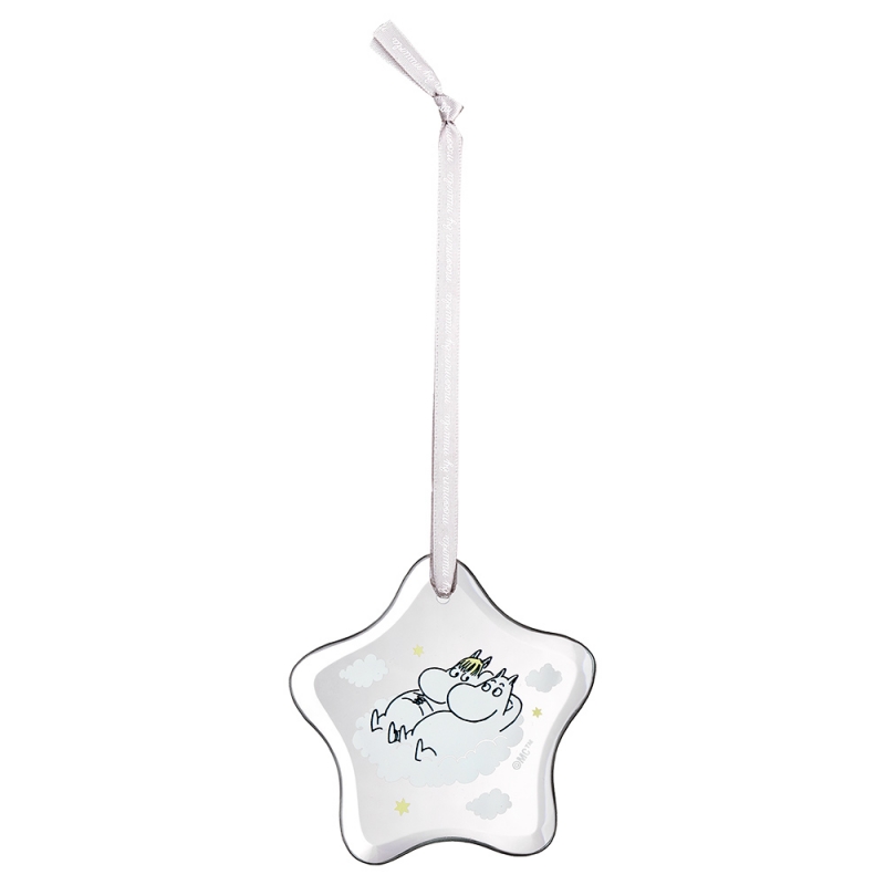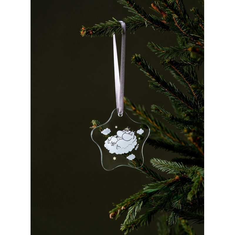 Vneste do svého domova kousek kouzelné atmosféry z údolí Mumínků. Ručně vyráběná skleněná dekorace ve tvaru hvězdičky nese milý motiv Muminka a slečny Ferky od slavné finské autorky Tove Jansson.