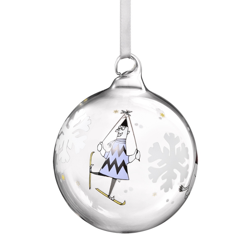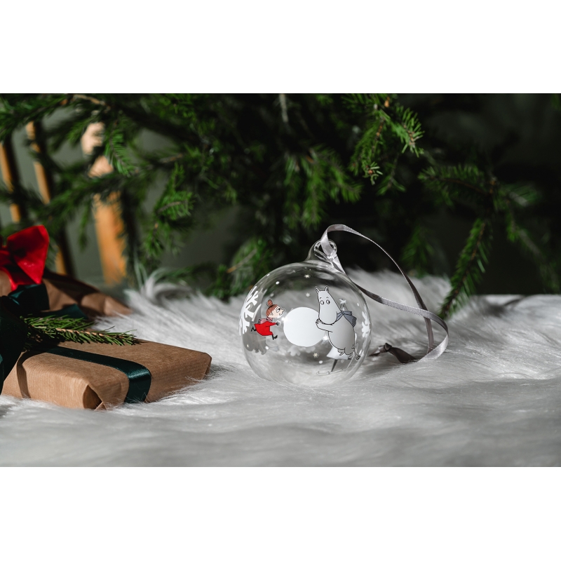 Skleněná vánoční ozdoba nese milý motiv Muminka a jeho kamarádů, kteří si užívají sněhovou nadílku v údolí. Ozdoba je ideální na zavěšení na vánoční stromeček nebo na větvičku ve váze. Vyrobeno ručně a baleno v krásné dárkové krabičce.