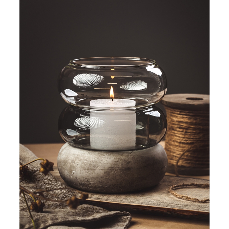 Spodní část je z betonu a je tak velmi stabilní, střední šedý a horní čirý díl pak z odolného borosilikátového skla. Váza či lucerna je balená v dárkové krabici, takže bude pěkným dárkem pro milovníky severského designu.