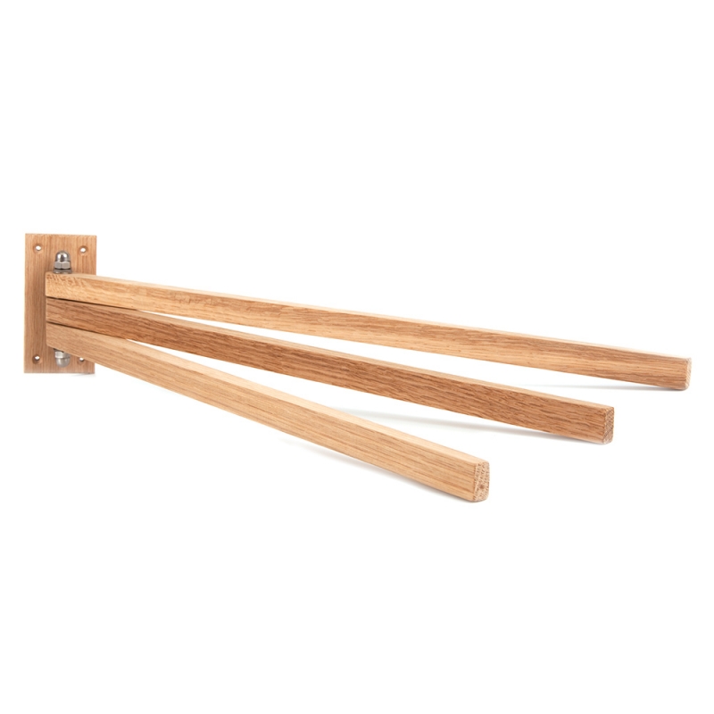Elegantní věšák na ručníky z masivního dubového dřeva s přírodním vzhledem je vybaven třemi háčky, na které lze snadno zavěsit ručníky nebo osušky v koupelně nebo sauně. Minimalistický design v severském duchu podtrhne atmosféru jakéhokoliv interiéru.