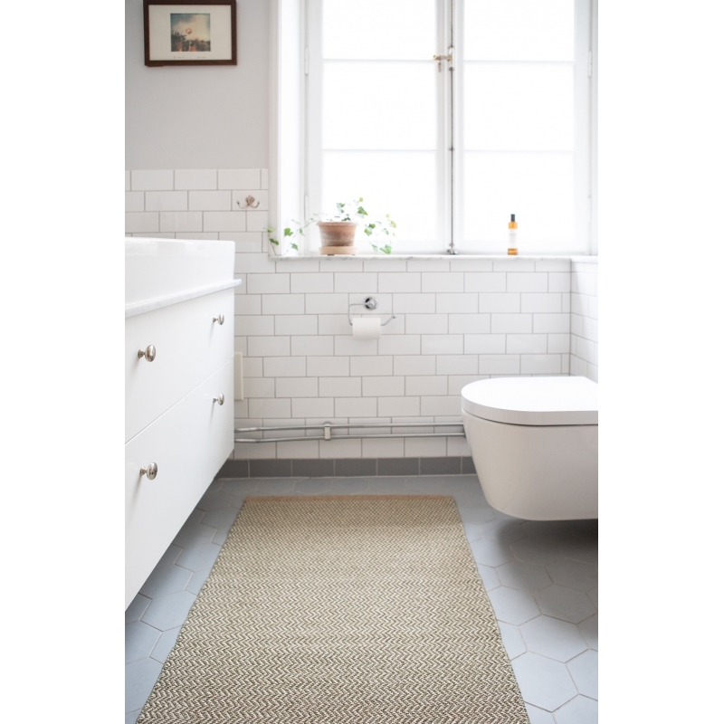 Ručně pletený kusový koberec s jemným severským vzorem Strand je vhodný i pro náročné prostředí včetně venkovního použití na terase nebo balkoně. Velmi dobře poslouží také v kuchyni nebo v chodbě, kde klasické koberce trpí vlhkostí a častějším znečištěním. Vinylová folie je protiskluzová, odolná, lze ji vyprat a je vhodná pro alergiky. Koberec je tenký a může tak být i v místech, kde vyšší koberce překáží dveřím.
