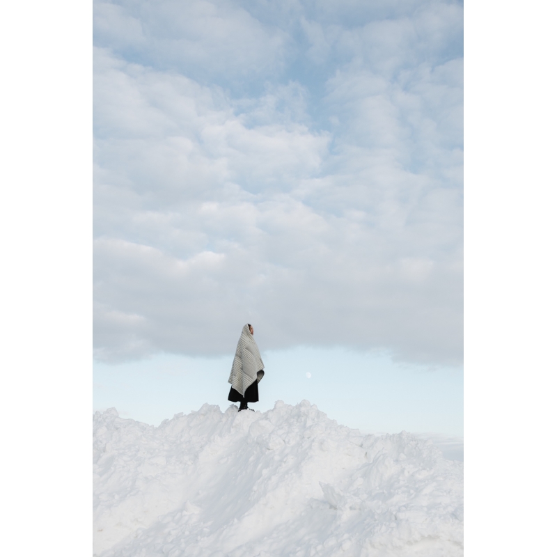 Minagawa tento dojem přenesl na deku pomocí jednoduchých linií, které se skládají a překrývají jako jemné záhyby látky. Vzniká tak působivý třírozměrný efekt – nenápadný, ale hluboký. Deku tak vnímáte nejen jako funkční doplněk, ale i jako poetický obraz v každodenním prostoru.
