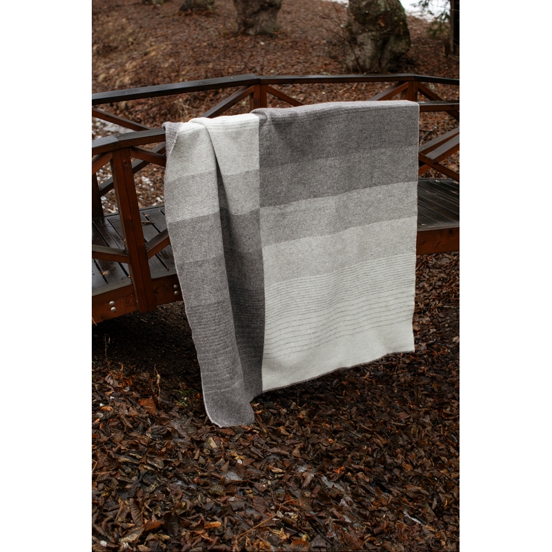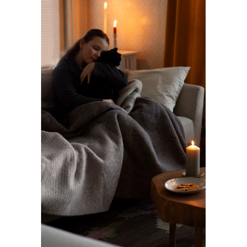 Velká vlněná deka Kaamos (finsky polární noc) je utkaná ve Finsku z prvotřídní finské ovčí vlny Finnsheep v kombinaci s certifikovanou novozélandskou vlnou. Designérka Hanna Galtat se inspirovala každodenním cyklem světla a tmy. Příjemný hnědý odstín dodá interiéru klidnou a útulnou atmosféru.
