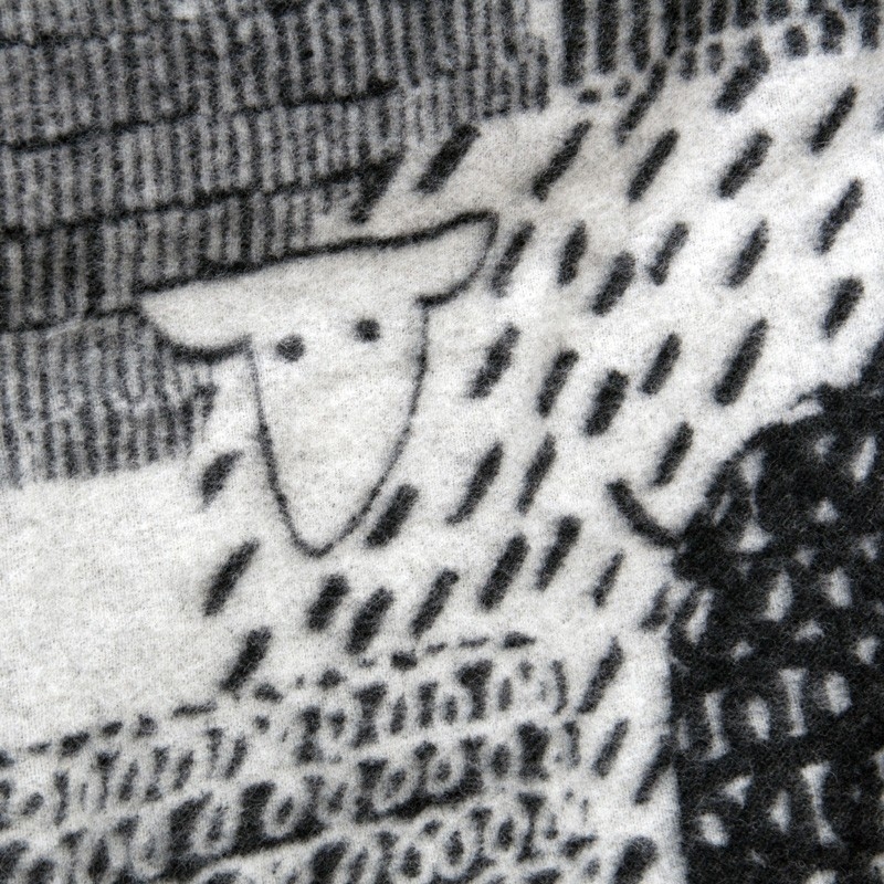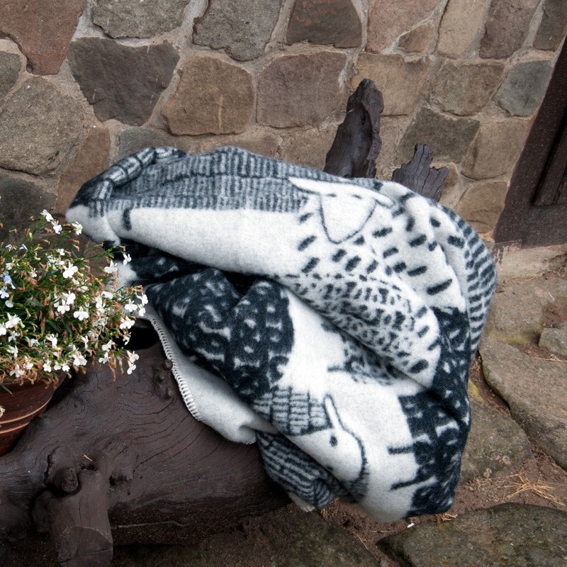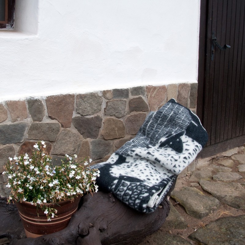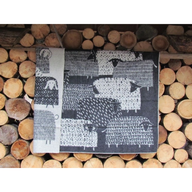 Nádherná vlněná deka s motivem oveček zútulní atmosféru každého interiéru a pokud se do ní zachumláte, skvěle vás zahřeje. Z jedné strany je deka tmavá se světlou kresbou, na druhé je naopak světlý podklad a kresba tmavá.