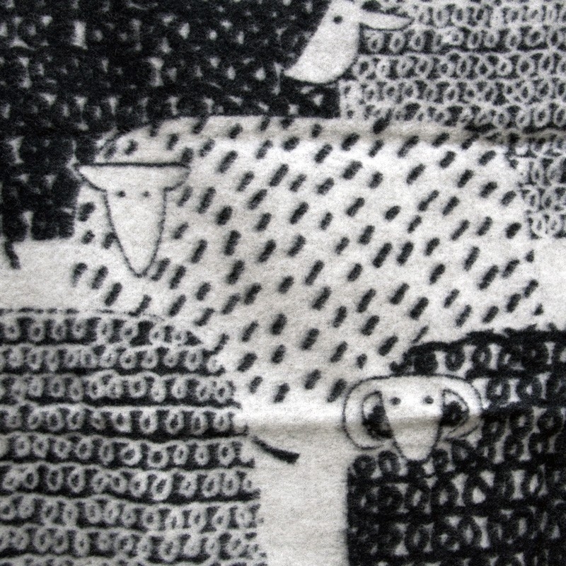 Kvalitní velká deka Päkäpäät ze 100% čisté střižní vlny v černo-bílém provedení. Krásný motiv s ovcemi navrhl pro Lapuan Kankurit známý japonský designér Masaru Suzuki.