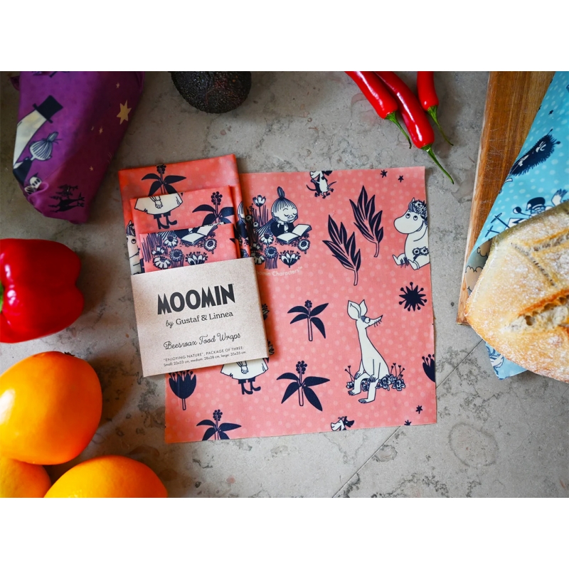 Voskované ubrousky s originálním motivem Mumínků spojují hravý severský design s praktickým a ekologickým řešením pro uchovávání potravin. Voskovaný ubrousek díky směsi včelího vosku, pryskyřice a jojobového oleje funguje jako přírodní alternativa plastové fólie. Dobře přilne k potravinám i k povrchu nádobí. Stačí jej lehce zahřát v dlaních a tvarovat například kolem ovoce, zeleniny, toustu či misky. Díky přirozeným antibakteriálním vlastnostem vosku zůstávají potraviny déle čerstvé, zatímco vy šetříte životní prostředí. Skvělý způsob, jak si zabalit svačinu nebo zakrýt potraviny v lednici.