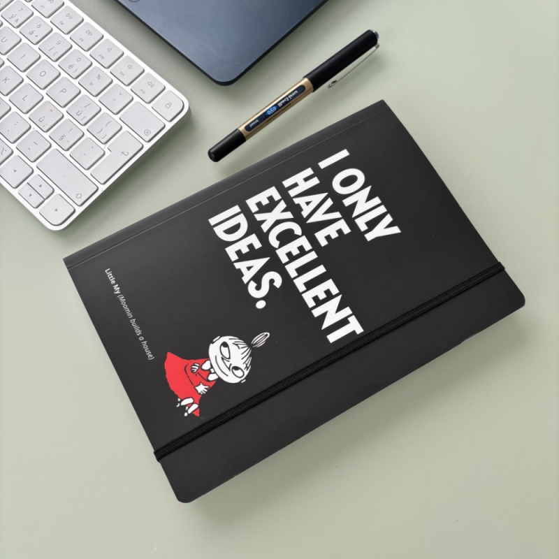 Hravý zápisník s měkkou obálkou, na které se Malá Mia sebevědomě usmívá pod nápisem „I only have excellent ideas“. Ideální společník pro všechny, kdo mají hlavu plnou skvělých nápadů a nechtějí si je nechat utéct. Pravé stránky jsou linkované, levé čisté, takže se hodí pro psaní i kreslení. Zápisník má 128 stran, praktickou gumičku pro uzavření a kompaktní formát A5, který se vejde kamkoli. Zápisník je vyrobený v Estonsku.
