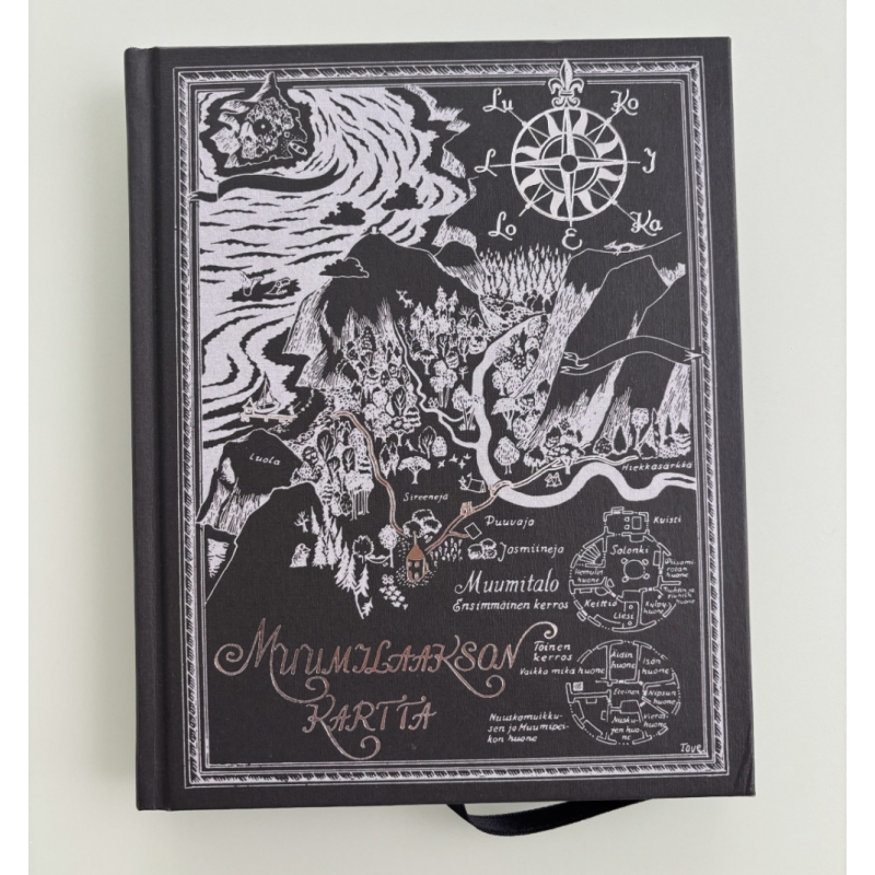 Elegantní zápisník s tvrdými deskami a motivem mapy údolí Muminků podle ilustrací Tove Jansson má 128 čistých stran z kvalitního papíru a praktickou záložkou. Na obálce je decentní stříbrná ražba muminkovského motivu, která dodává zápisníku nadčasový vzhled. Ideální pro psaní poznámek, deníku nebo kreativní nápady – potěší všechny milovníky severského designu a světa Muminků.