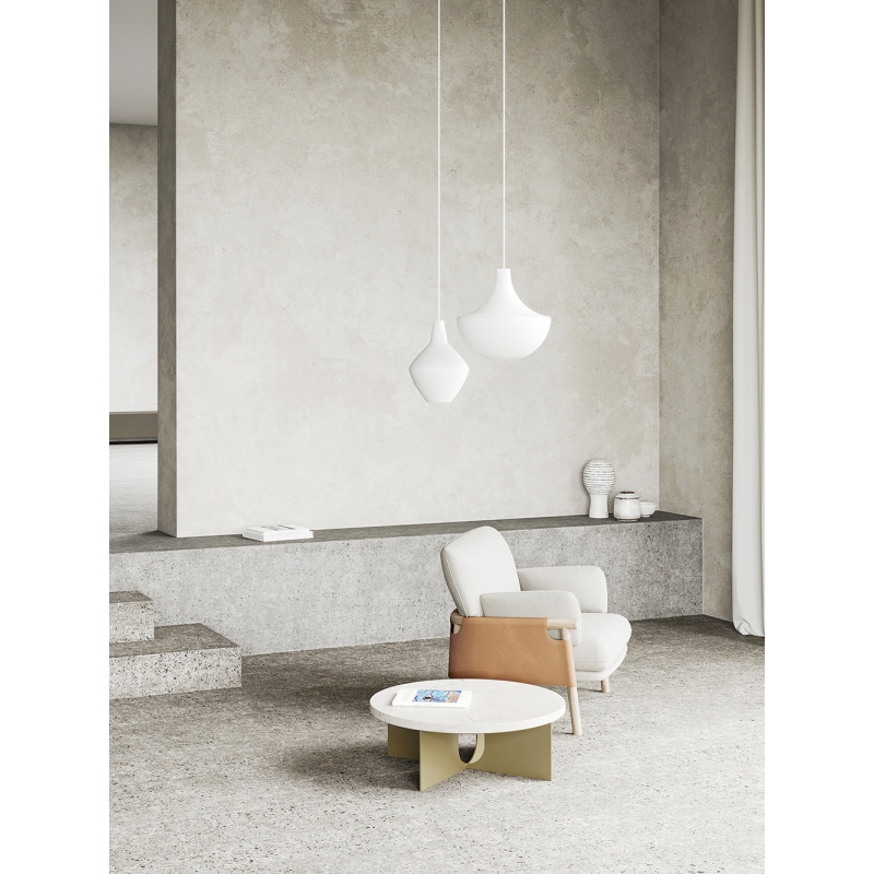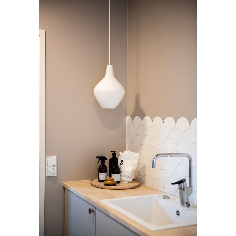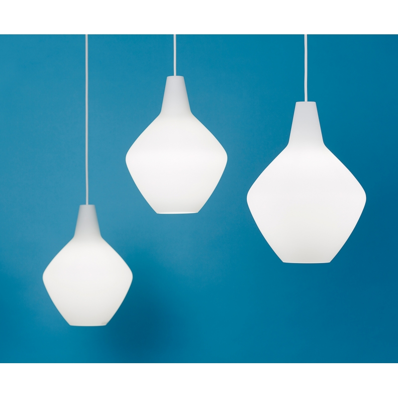 Závěsná lampa Sipuli z ručně foukaného opálového skla je inspirovaná zaoblenými křivkami cibule. Stínidlo jemně rozptyluje světlo do prostoru a vytváří v něm příjemnou atmosféru. Lampu navrhla finská designérka Lisa Johansson-Pape v roce 1954.