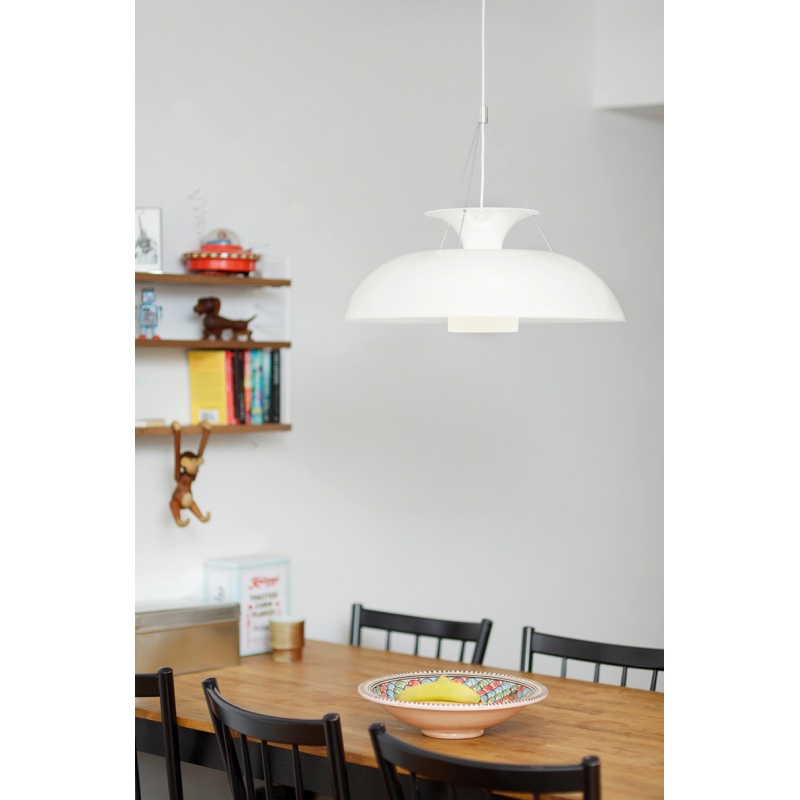 Závěsná lampa Taifuuni se skládá ze dvou akrylových stínidel, které spojují kovová lanka. Lampu navrhl Yrjö Harsia v roce 1969 a dodnes se díky svému nadčasovému designu těší velké oblibě. Stínidla si doslova pohrávají s intenzitou světla, které příjemně šíří do celé místnosti.