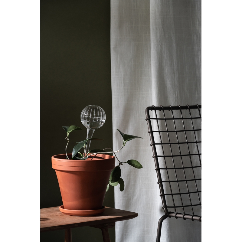 Skleněná baňka na zavlažování pokojových rostlin vám usnadní péči o vaše zelené miláčky. Naplňte ji vodou, zapíchněte do půdy a odjeďte s klidem na týdenní dovolenou. A samozřejmě se postarají o postupné zavlažování, i když jste doma. Zelený odstín krásně zapadne mezi listy.