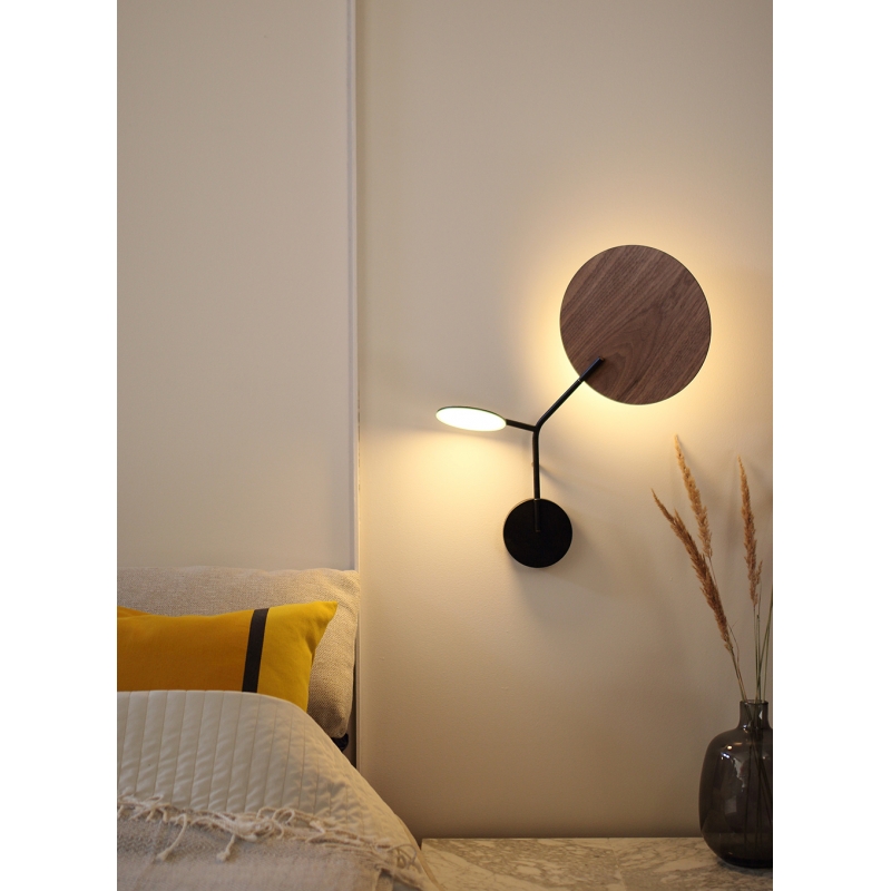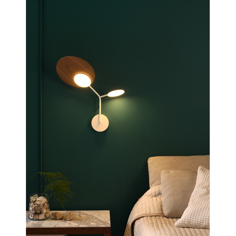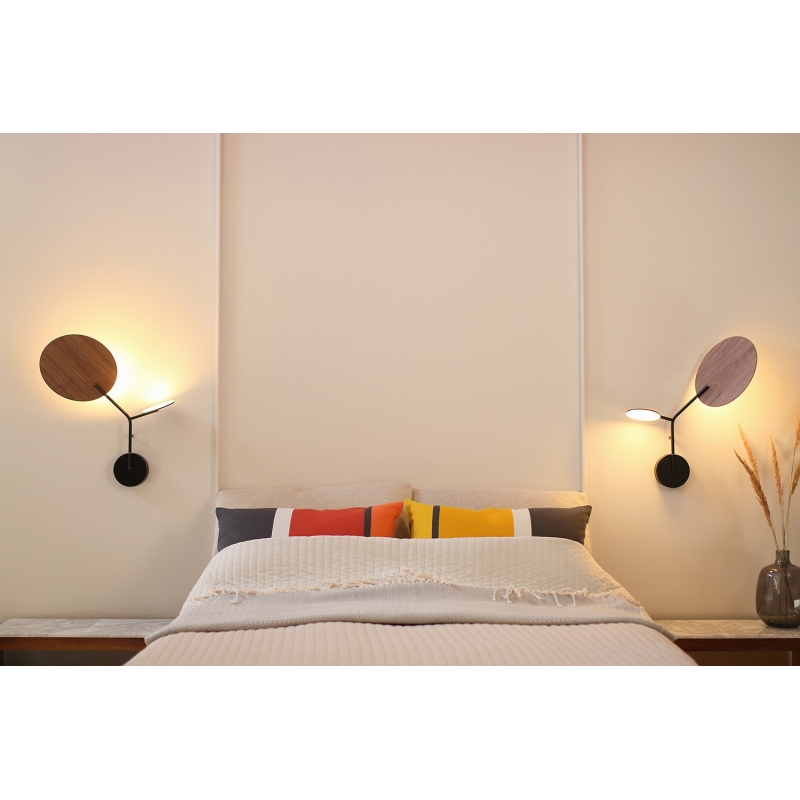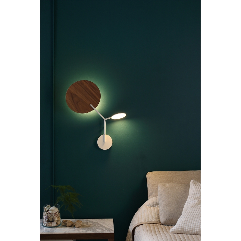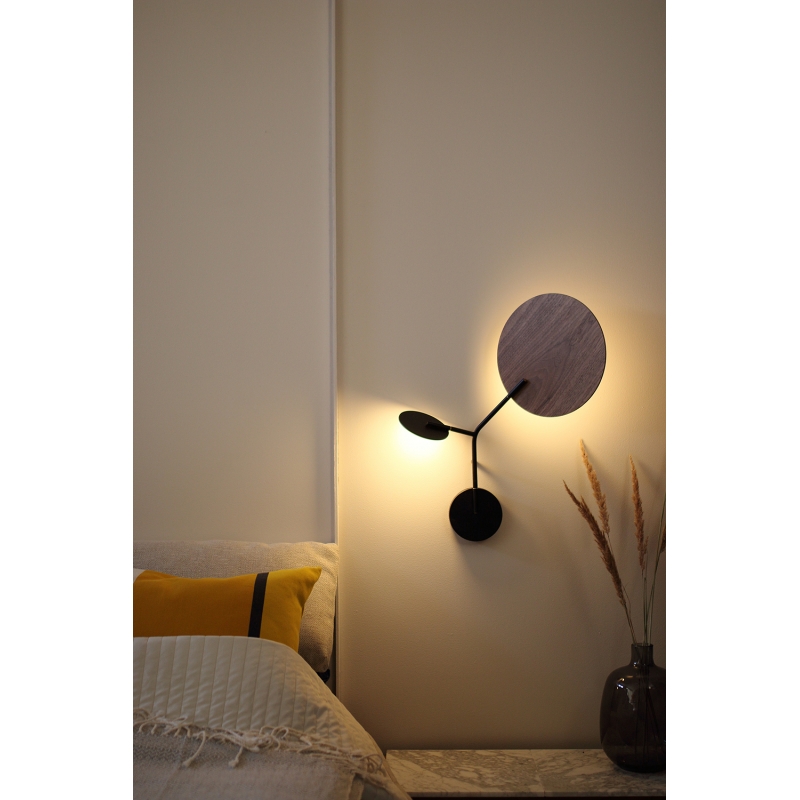 The lamp is available in two versions with a large disc on the left and right, so you can use them as elegant lamps on the sides of the bed in the bedroom or by the sofa in the living room. This version of the Wall3 lamp has the right panel supported by a larger disc, which can have a decor of high-quality oak or walnut wood or a pure white shade like the rest of the lamp. Please select the desired variant before adding to cart.