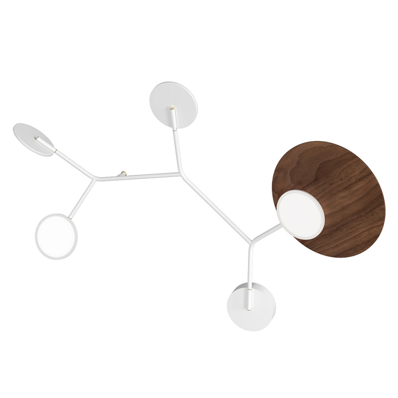 This variant of the Wall5 lamp has a single panel supported by a larger disc, which can be finished in high-quality oak or walnut wood or in a pure white shade like the rest of the lamp. Please select the desired variant before adding to cart.