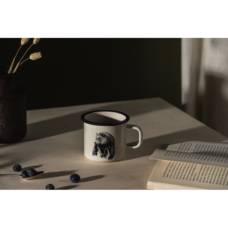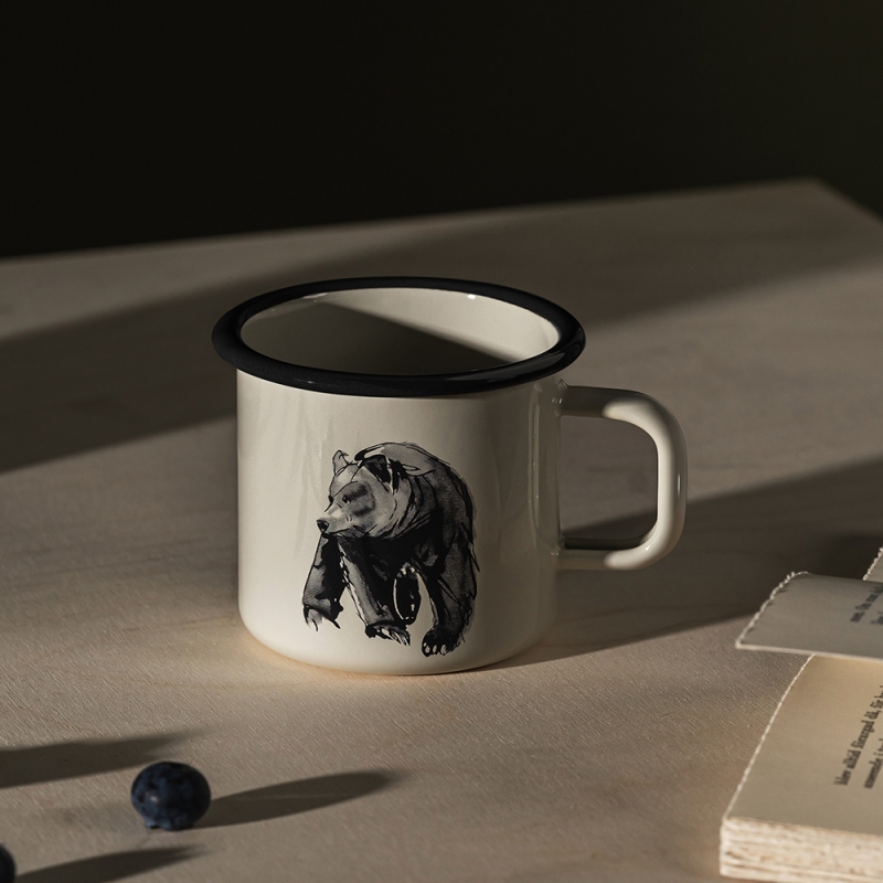This beige enamel mug with a bear motif by Finnish painter Teemu Järvi will take you into the wild Nordic nature. A beautiful gift for all nature lovers.