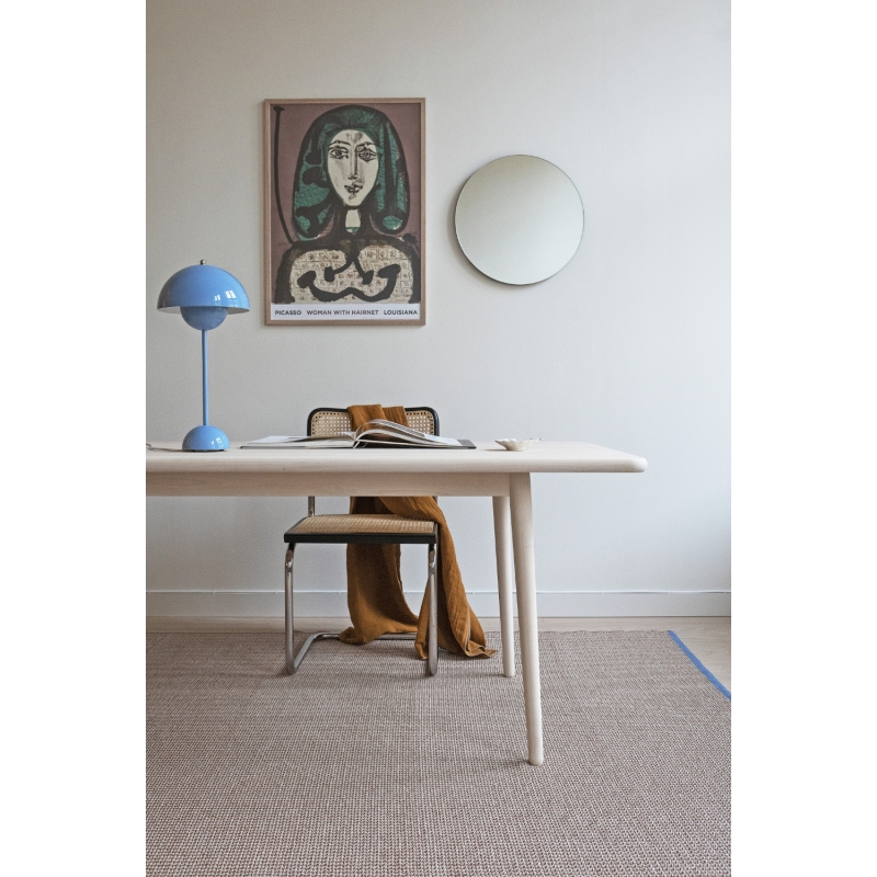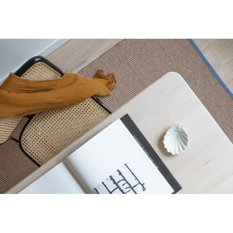 Spot clean immediately with a clean damp cloth, do not rub the carpet. Hand wash with a small amount of detergent at 30°C, do not wring, do not tumble dry. Always hang the wet carpet to dry. The carpet may shrink by approximately 5% after washing. The carpet is suitable for both indoor and outdoor use. However, when exposed to high temperatures in direct sunlight, the edges may curl slightly. In this case, wet the carpet and gently straighten it. Do not leave the carpet outside in winter, frost could damage the fibers.