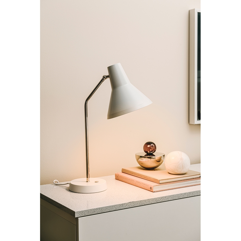 The Carin table lamp impresses at first glance with its sophisticated, timeless design from 1957, combining a white lampshade, brass construction and a practical touch switch. A high-quality Finnish lamp with a distinctive design that has stood the test of time.