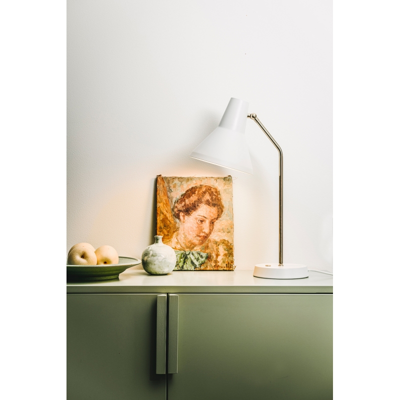 The Carin table lamp impresses at first glance with its sophisticated, timeless design from 1957, combining a white lampshade, chrome construction and a practical touch switch. A high-quality Finnish lamp with a distinctive design that has stood the test of time.