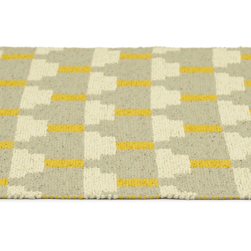 The hand-knitted Confect piece rug is decorated with a Scandinavian pattern in a yellow shade. The rug is also suitable for demanding environments, including outdoor use on a terrace or balcony. It will also work very well in the kitchen or hallway, where classic carpets suffer from moisture and frequent dirt. The vinyl foil is non-slip, durable, washable and suitable for allergy sufferers.