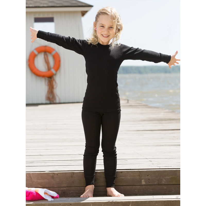 A children's T-shirt made of a fine blend of organic merino wool and natural silk provides exceptional comfort all year round - cool in summer, warm in winter. The light, breathable knit adapts naturally to the child's movement and wicks away moisture without feeling damp. Thanks to its softness, it is ideal not only as a base layer in changeable weather, but also as comfortable pajamas.