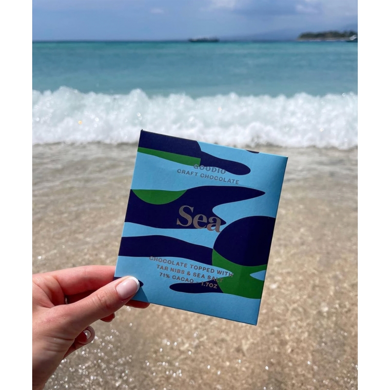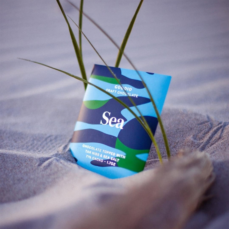 Finnish chocolate maker Goodio uses the finest organic Criollo cocoa beans from Peru . The beans are ground in stone mills for three days, giving the chocolate a velvety consistency and delicious taste, which is enhanced by all-natural wood tar and sea salt flakes. Everything is topped off with a beautifully designed packaging that makes the chocolate perfect for gifting.