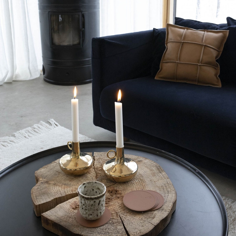A high-quality recycled leather coaster will enhance your dining table and protect it from stains and glass breakage. The quilted edges create a timeless style that will easily fit into both modern and traditional interiors. Made in Finland.