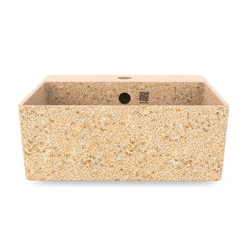 The Cube40 designer square washbasin made of a natural composite of solid aspen wood and resin will give your bathroom a pleasant and peaceful atmosphere. The sophisticated yet simple timeless design lets the unique structure stand out. The innovative material directly from the Woodio workshop is impermeable, easy to maintain, 100% recyclable and the production leaves an 80% lower carbon footprint than classic ceramic washbasins. The manufacturer guarantees the quality with an extended 5-year warranty.