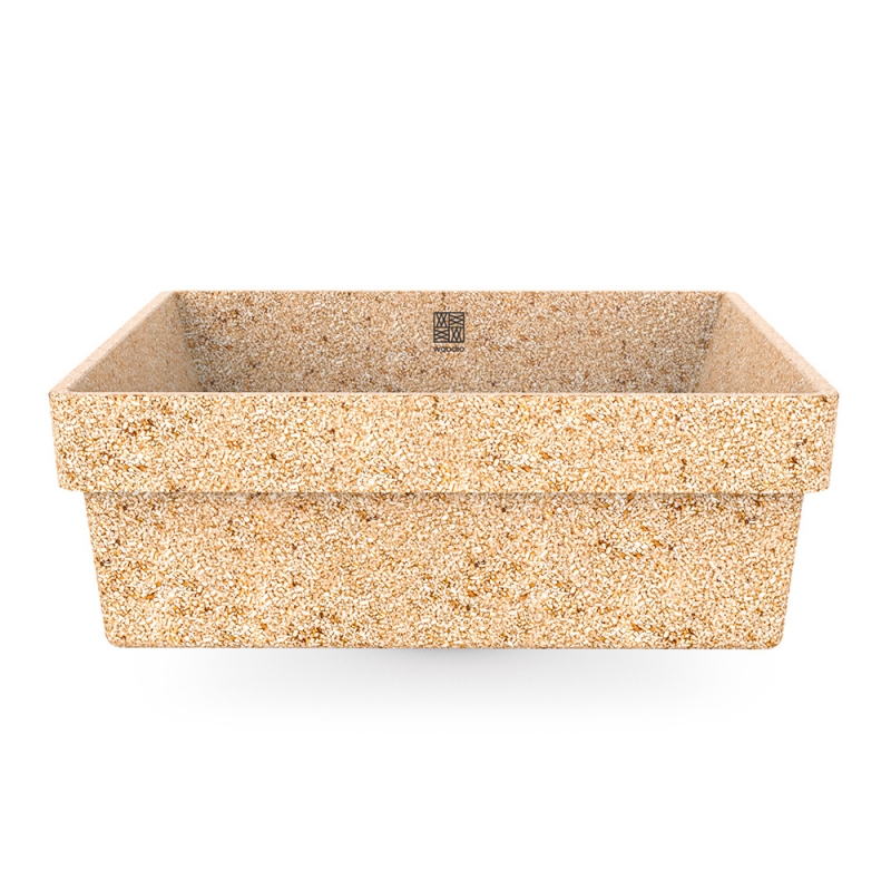 The Cube40 designer square washbasin made of a natural composite of solid aspen wood and resin will give your bathroom a pleasant and peaceful atmosphere. The sophisticated yet simple timeless design lets the unique structure stand out. The innovative material directly from the Woodio workshop is impermeable, easy to maintain, 100% recyclable and the production leaves an 80% lower carbon footprint than classic ceramic washbasins. The manufacturer guarantees the quality with an extended 5-year warranty.