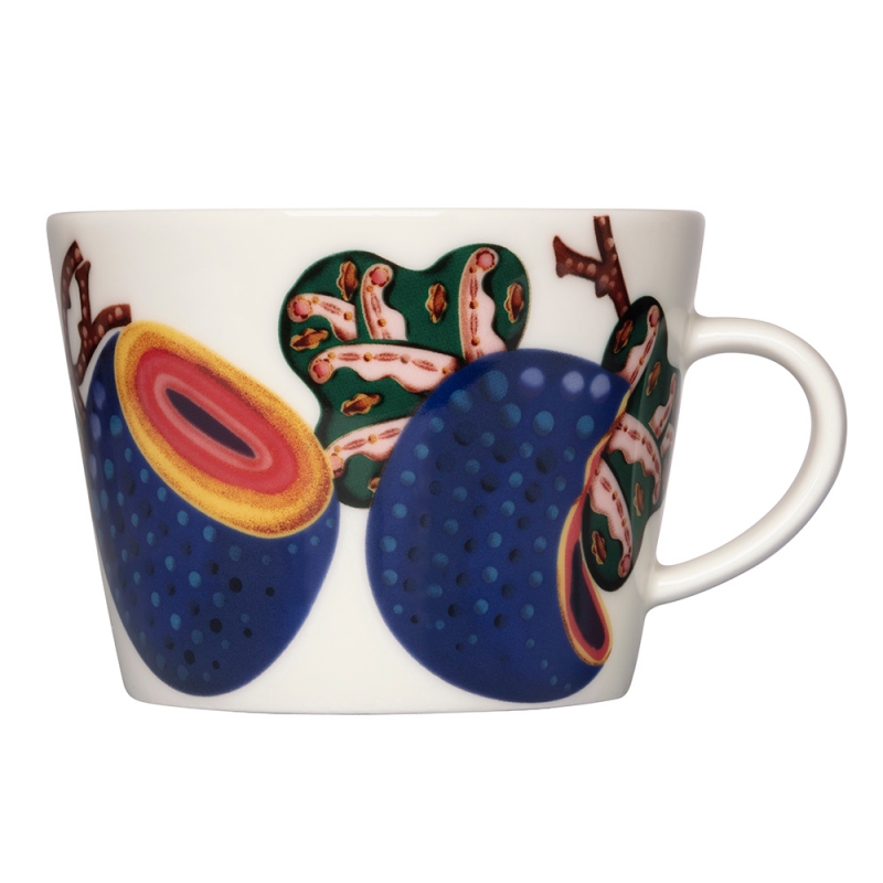 The white porcelain coffee or cappuccino cup with saucer from the Iittala Taika Sato collection will delight every coffee lover. Taika means magical in Finnish and designer Klaus Haapaniemi has done a fantastic job of this theme. The story of the popular collection from 2024 develops a new Sato motif, where Haapaniemi has captured the harvest in his own unique style fruits and vegetables. His illustrations inspire, stimulate your imagination and lead you to new ideas.