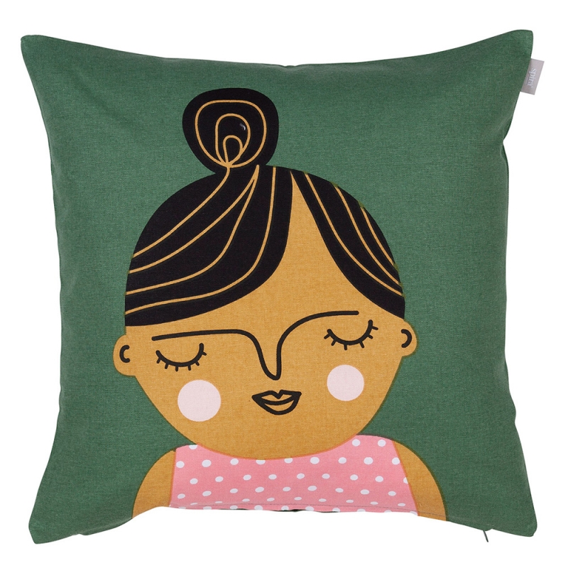 The cotton pillowcase from the Kompisar (Swedish for friends) collection features the cheerful Esmeralda. She likes to keep things under control and loves when everything is clean and tidy. She is a great listener. You can tell her anything and she will never reveal your secrets. A collection with a variety of different faces Designed by Swedish designer Isabelle Norman Sällström, you can bring home a bunch of good friends who will always lift your spirits. The pillow is hand-printed and zipped.