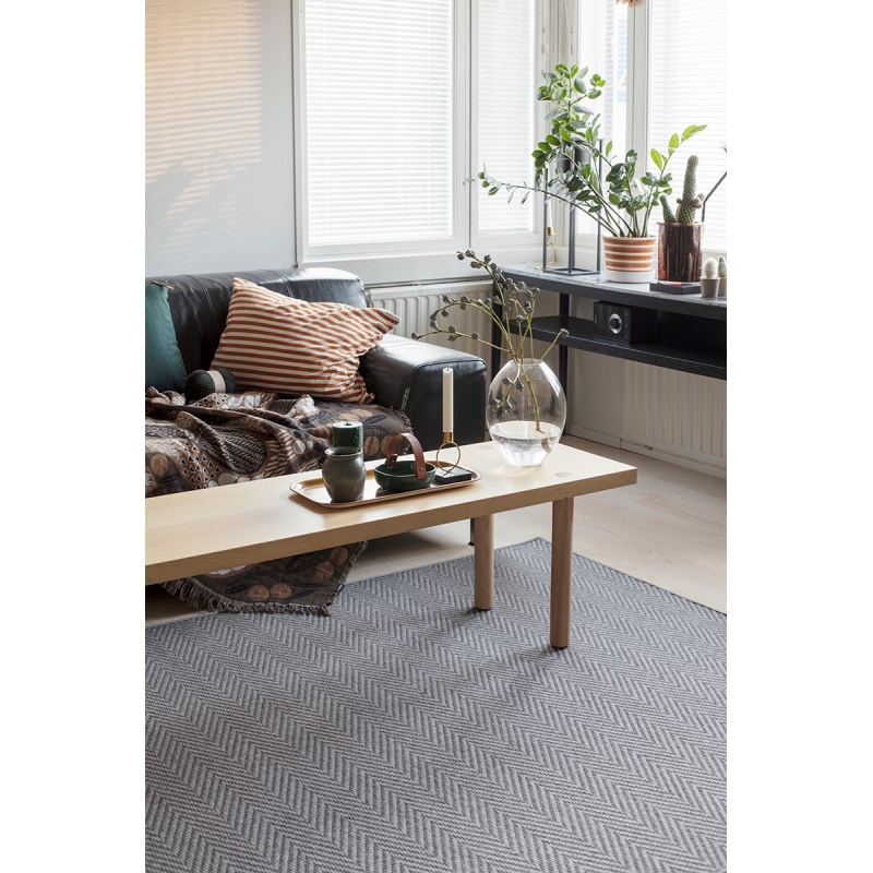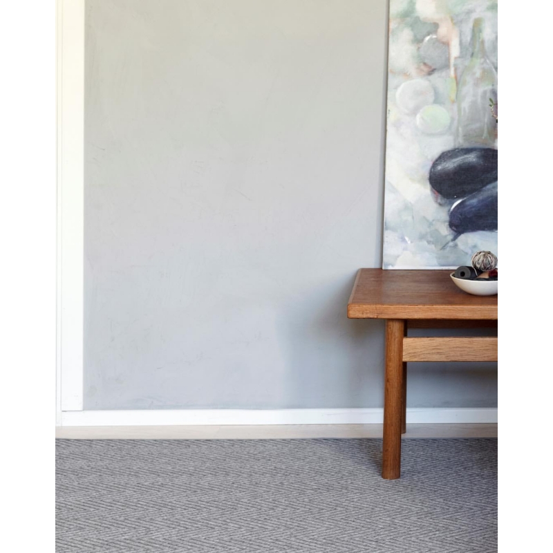 Elsa wool and paper fiber piece rug with a traditional herringbone pattern. The regular, elegant pattern is ideal for a living room or bedroom, for example.
