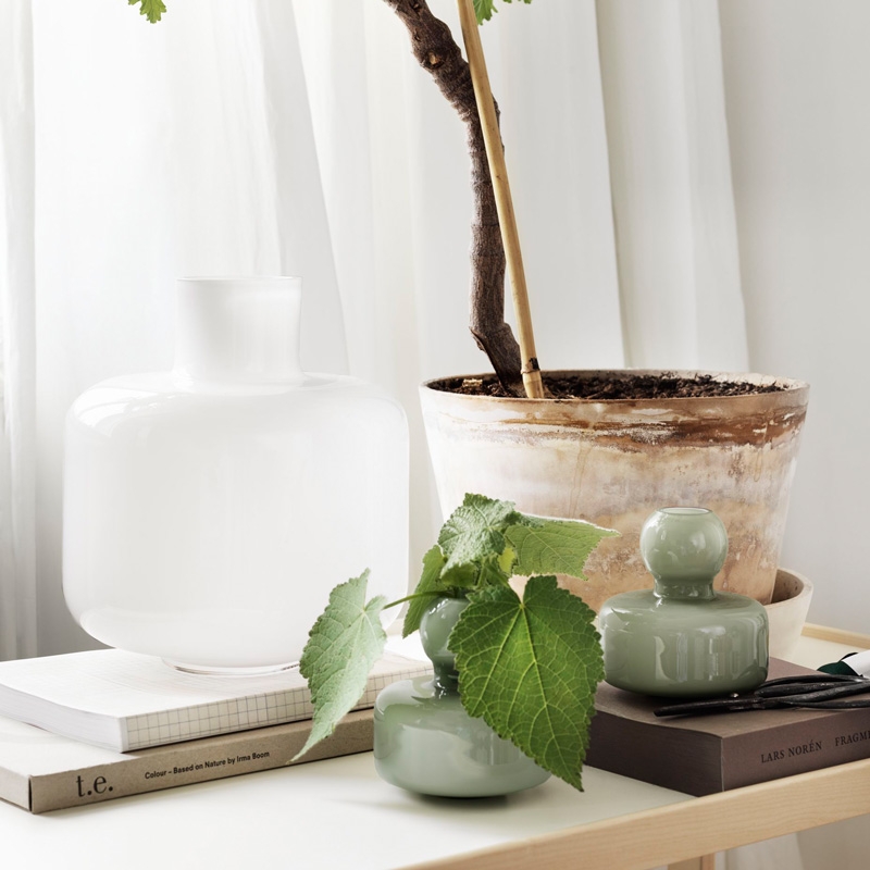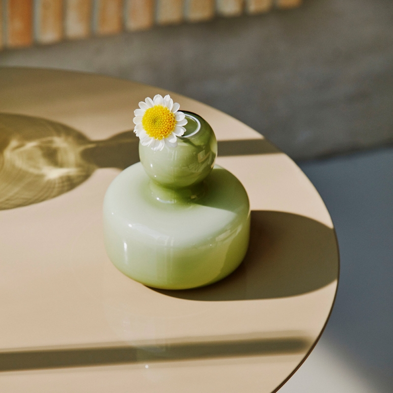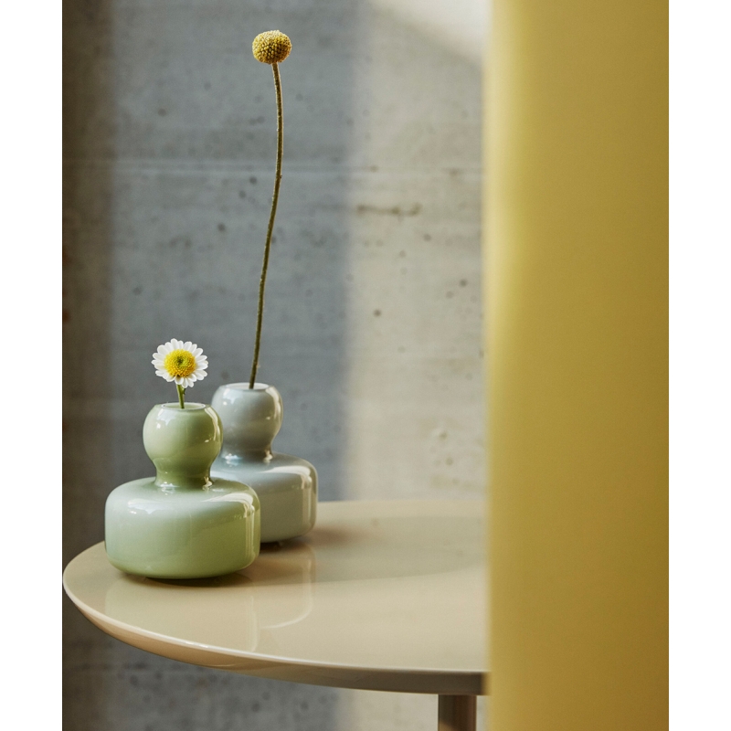 The hand-blown green Flower vase in a minimalist design is inconspicuous at first glance, but it can create a pleasant atmosphere. Graceful curves with a pronounced taper make it ideal for individual flowers, twigs or simple small bouquets.