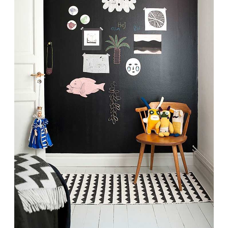 Hand-knitted piece carpet Gittan in black and white. The carpet is also suitable for demanding environments, including outdoor use on a terrace or balcony. It will also work very well in the kitchen or hallway, where classic carpets suffer from moisture and frequent dirt. The vinyl foil is non-slip, durable, washable and suitable for allergy sufferers.
