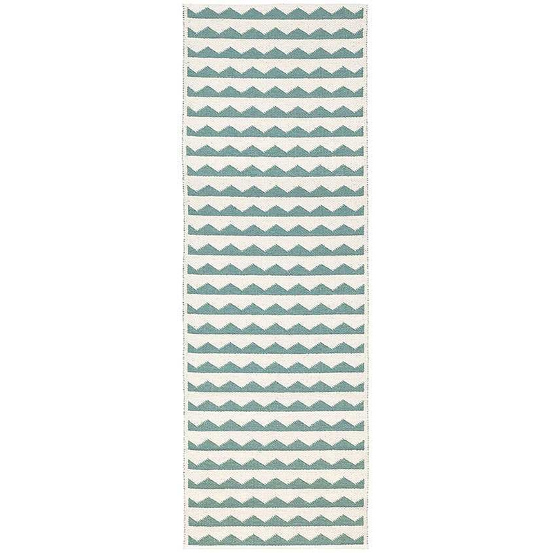 Hand-knitted piece carpet Gittan in turquoise. The carpet is suitable for demanding environments, including outdoor use on a terrace or balcony. It will also work very well in the kitchen or hallway, where classic carpets suffer from moisture and frequent dirt. The vinyl foil is non-slip, durable, washable and suitable for allergy sufferers.