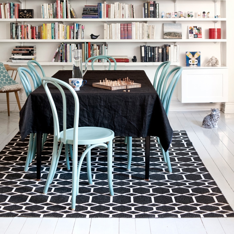 The hand-knitted Ingrid piece carpet in black is decorated with a geometric pattern. The carpet is also suitable for demanding environments, including outdoor use on a terrace or balcony. It will also work very well in the kitchen or hallway, where classic carpets suffer from moisture and frequent dirt. The vinyl foil is non-slip, durable, washable and suitable for allergy sufferers.