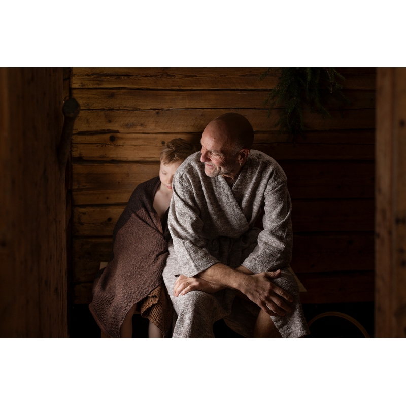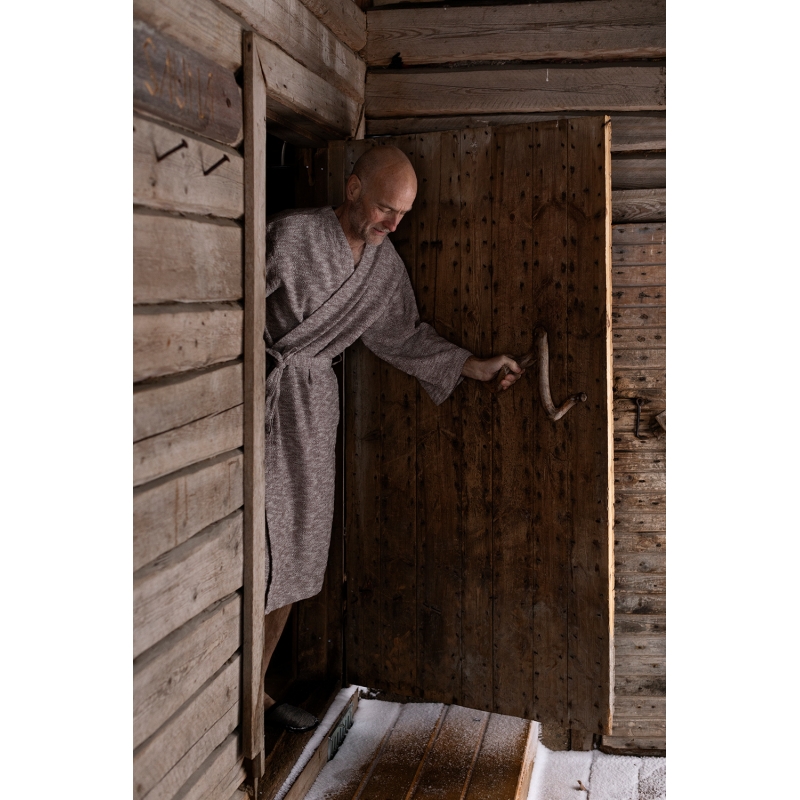 The timeless shade and cut, top-quality natural material and production in Finland reflect the values of Finnish design - the bathrobe is functional, comfortable and forever beautiful. Wrap yourself in it at home after a hot bath, in the wellness center after a sauna or take it to the beach by the sea.