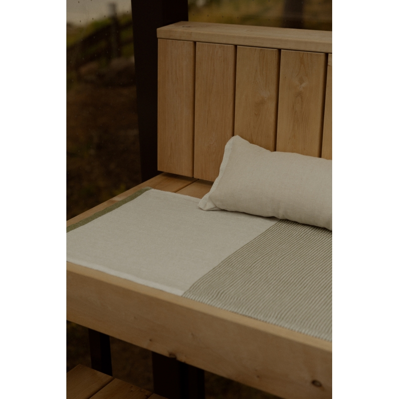 The mat is designed to provide comfort when sitting and lying down, while protecting the bench from sweat. Linen is pleasantly cool to the touch, which you will appreciate in the hot sauna environment, and it also softens and gains character with each wash.