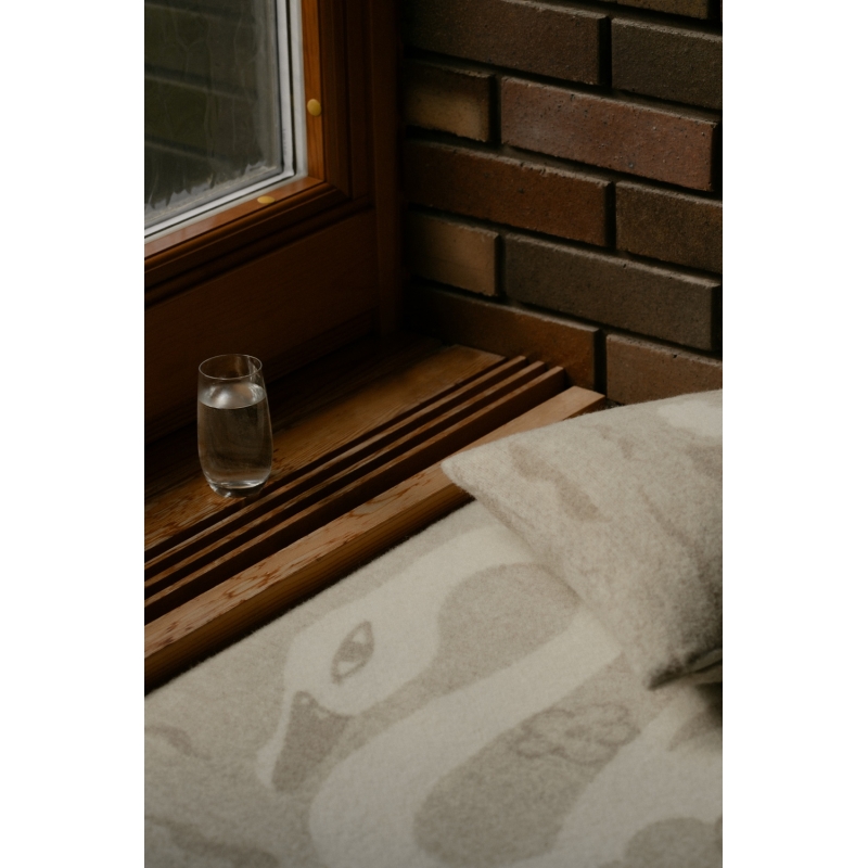 The high-quality large Kaksin blanket made of 100% pure wool features a distinctive original pattern by Finnish designer Armi Teva, which is full of fantasy and gentle playfulness. The motif was created spontaneously – by drawing, testing shapes and ideas, until it was literally born before the eyes of its author: "I started by drawing different types of flowers and illustrations of plants, and the shapes came about almost by accident – what if I drew this large flower with a swan's neck as a stem?"