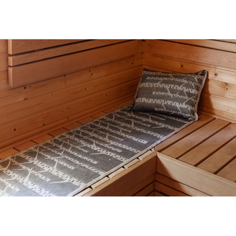 The lying sauna set will increase your comfort and improve hygiene when using the sauna. The set includes a long full-body mat and a large pillow.