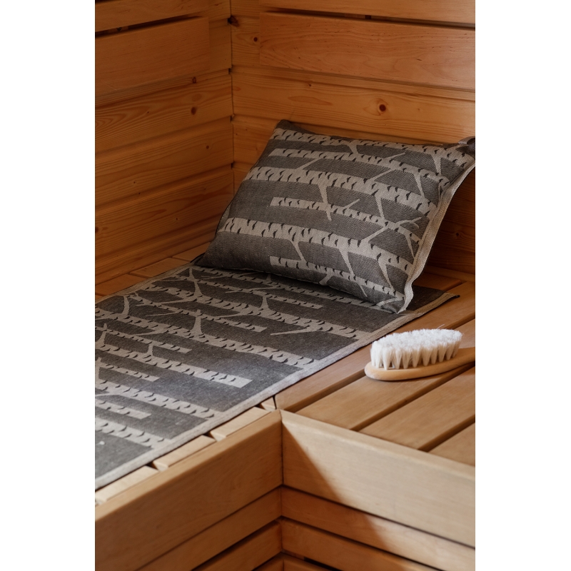 Relax in the sauna on an extra-long mat and a large, comfortable pillow with a birch trunk pattern. The snowy birch forest in neutral black and white will take you far away from the everyday world.