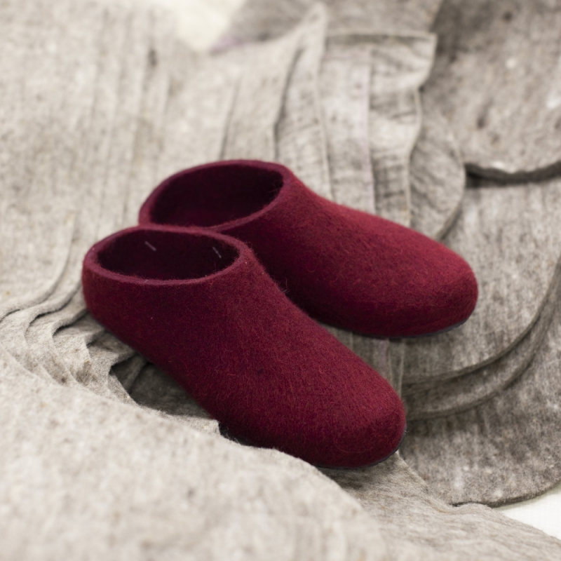 Lahtiset felt slippers with rubber sole / plum red