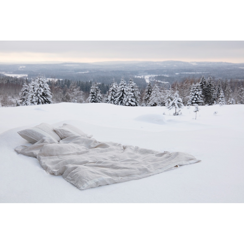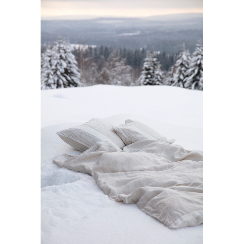 The luxurious linen duvet and pillowcase Usva is woven from 100% linen and is the best you can treat yourself to for a peaceful sleep. Behind the first-class quality of the bedding from the Finnish weaving mill Lapuan Kankurit is a special fine weaving from selected linen yarn originating from Normandy, which has a thinner and longer fiber and is therefore softer. The combination of natural linen varied with white stripes looks pleasant at first glance and will fine-tune the atmosphere in your bedroom.
