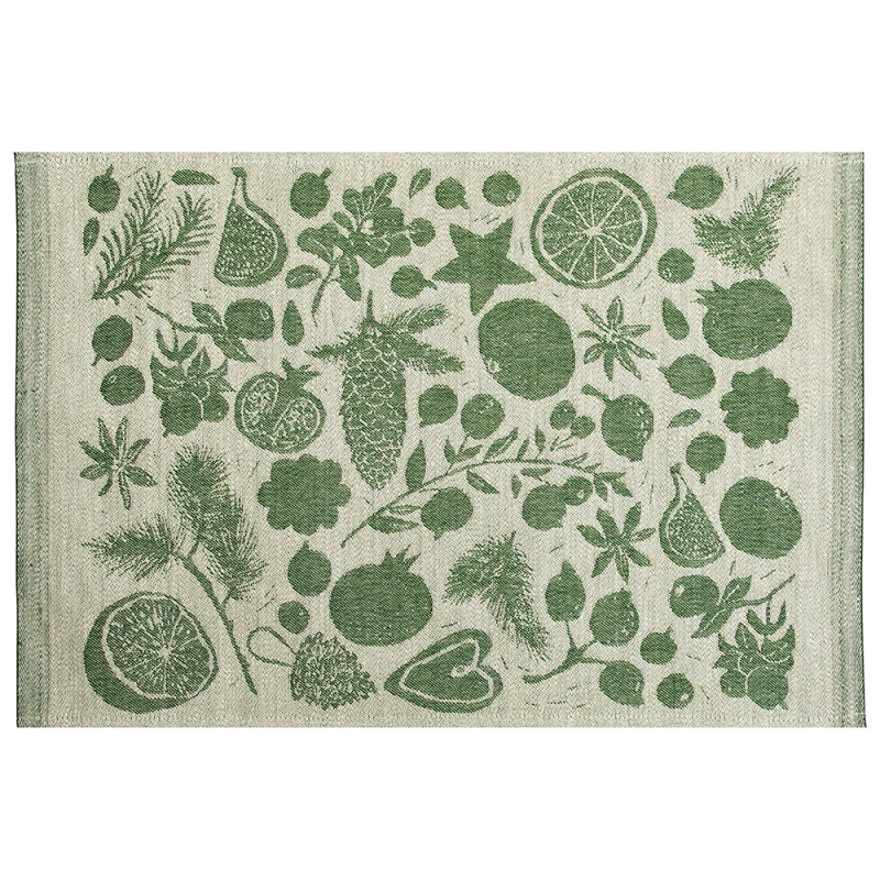The linen table setting with the Talven Tuoksut (Finnish for the scent of winter) motif was designed by Finnish designer Saara Obele. Star anise, dried orange, pomegranate, pine needles, all of these are part of the festive atmosphere and, in fact, every winter.