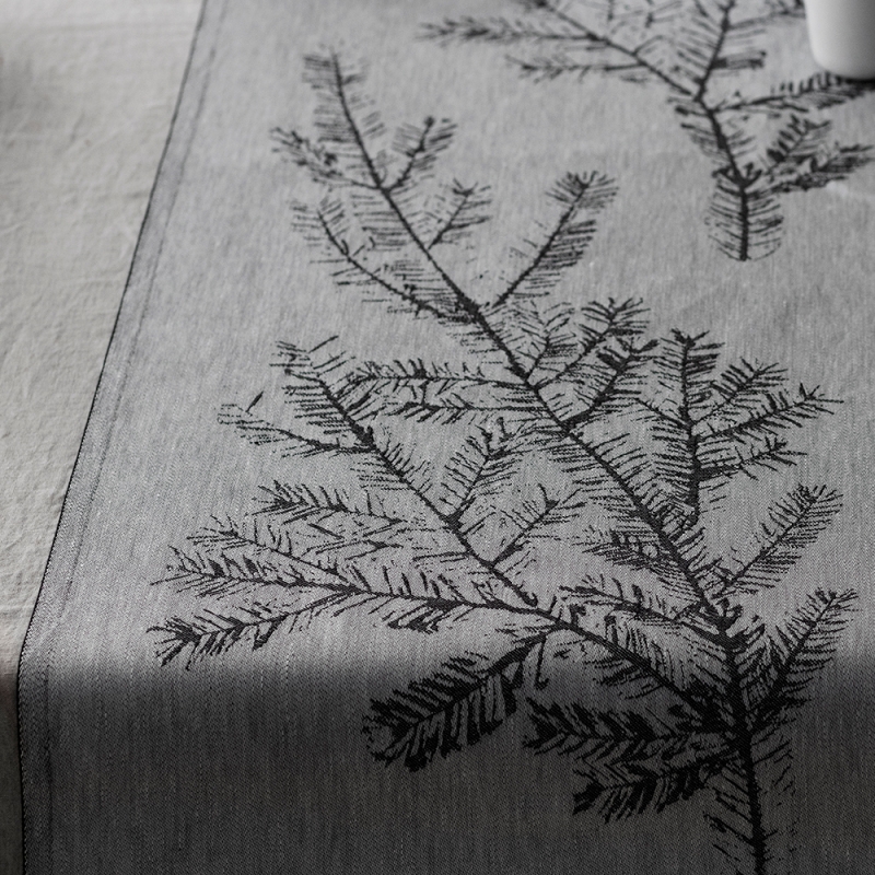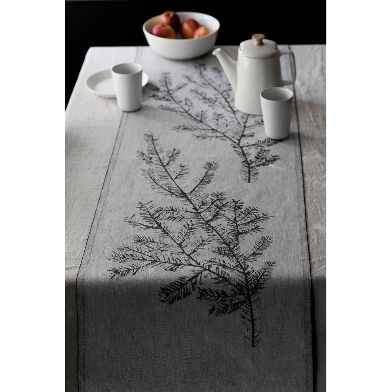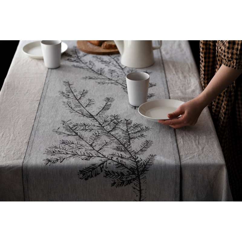 The Havu runner with a spruce branch motif by Finnish painter Teemu Järvi will take you into the heart of the wild Nordic nature. The black and white motif, thought out to the last detail, will charm you at first sight and will wonderfully finish off a dining table, whether in a Scandinavian or country style. The runner does not necessarily have to end up only on the dining table, but you can also use it as a decoration in the living room, for example.